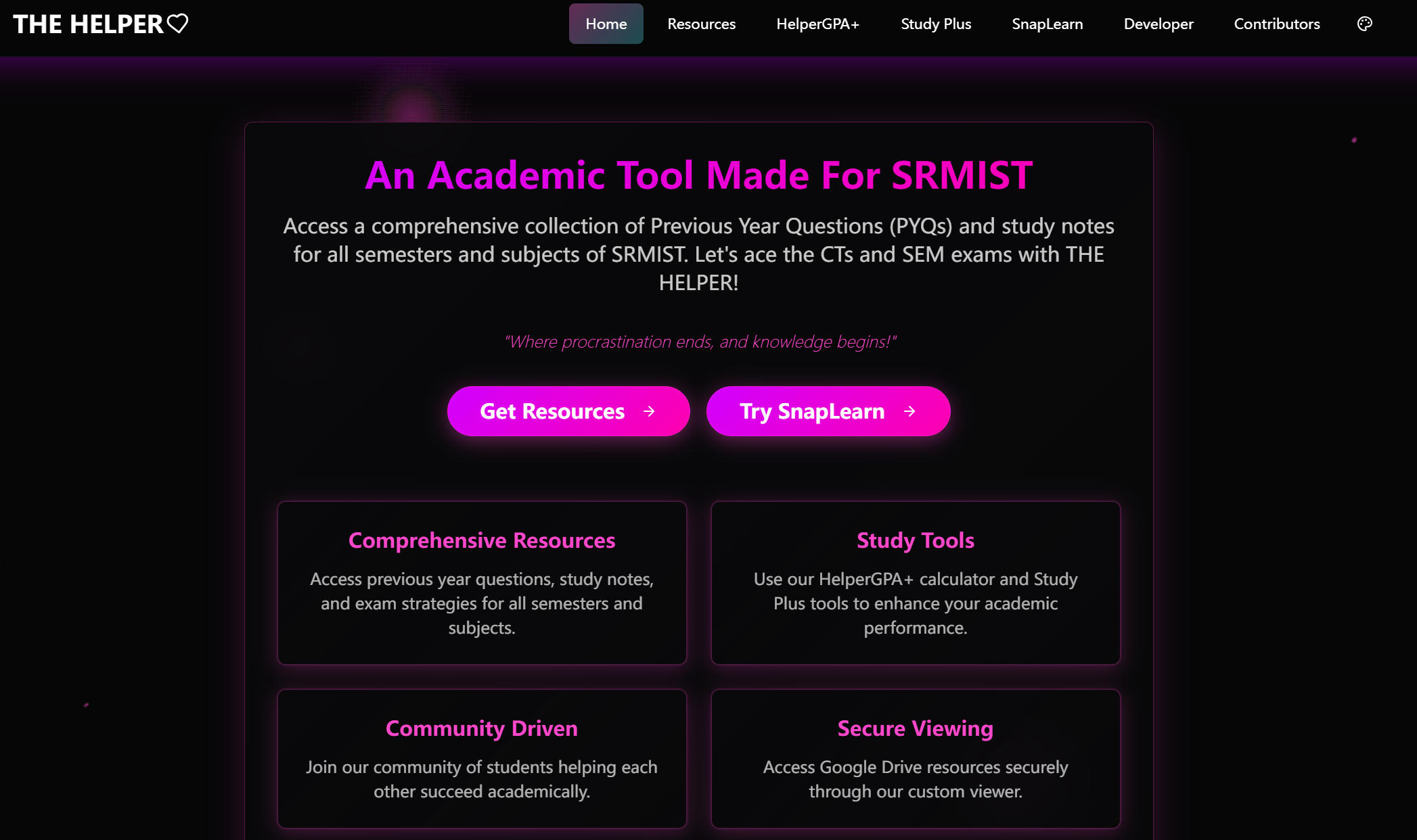 THE HELPER is a student-built academic tool designed specifically for students at SRMIST (SRM Institute of Science and Technology).